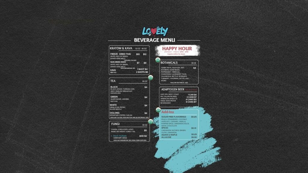 EXCELLENT Based on 52 reviews Posted on Julia KoptilaTrustindex verifies that the original source of the review is Google. Loved this spot! Everyone was super nice, the tea was delicious. Great atmosphere, positive energy! I’ll be back soon😊Posted on Tyler HynekyvThough.Trustindex verifies that the original source of the review is Google. As a tea lover I was very impressed with Lovely. Service was amazing, friendly and knowledgeable. I’d be here all the time if I lived closer. Highly suggest giving this place a try.Posted on Рустем НурланTrustindex verifies that the original source of the review is Google. Amazing taste and friendly people. I love it!Posted on Алена КостинаTrustindex verifies that the original source of the review is Google. A very nice place with exceptional service and delicious healthy teas!Posted on XynGGTrustindex verifies that the original source of the review is Google. Had the pleasure of talking with the owner and learning about the teas! Definitely will be back. Thank you again 😀Posted on Haley HervertTrustindex verifies that the original source of the review is Google. Very cute tea and drink shop with an owner that is incredibly knowledgeable on Kratom, kava, fungi, and teas. The oolong tea was great and my husband enjoyed his relaxing Kratom drink. We will definitely be back!Posted on Illuminated ExtractorsTrustindex verifies that the original source of the review is Google. Lovely is just lovely! Top shelf all the way and run by the most professional people I know. 10/10 would recommend.Posted on Ben DiskinTrustindex verifies that the original source of the review is Google. Great kratom and tea flavors, awesome owner, in a cool spot! Highly recommend!Posted on Chris DeleonTrustindex verifies that the original source of the review is Google. Love this spot! Filipp is incredibly knowledgeable and helpful.Verified by TrustindexTrustindex verified badge is the Universal Symbol of Trust. Only the greatest companies can get the verified badge who has a review score above 4.5, based on customer reviews over the past 12 months. Read more